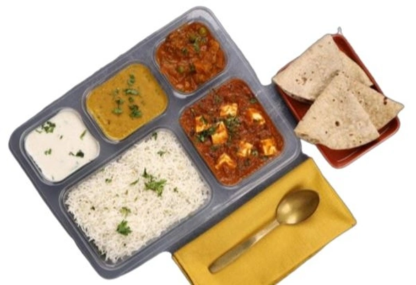 Rice, Dal, Butter Roti - 2pcs, Bhaja, Veg Sabji (Any), Paneer Sabji, Salad, Pickle